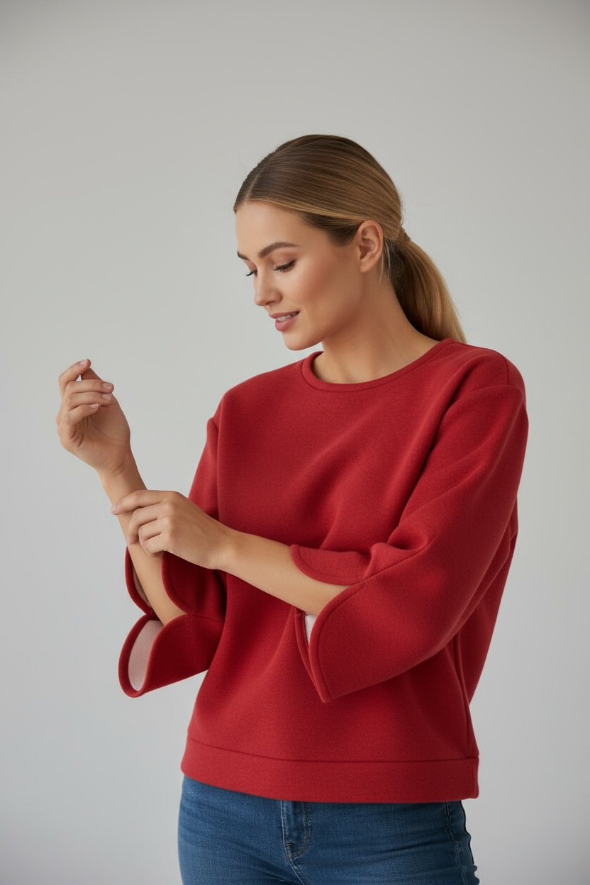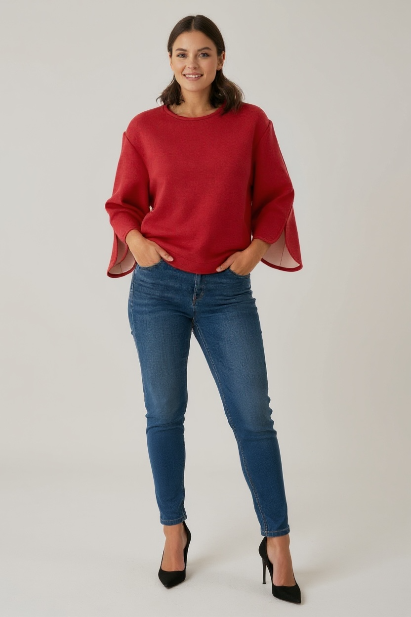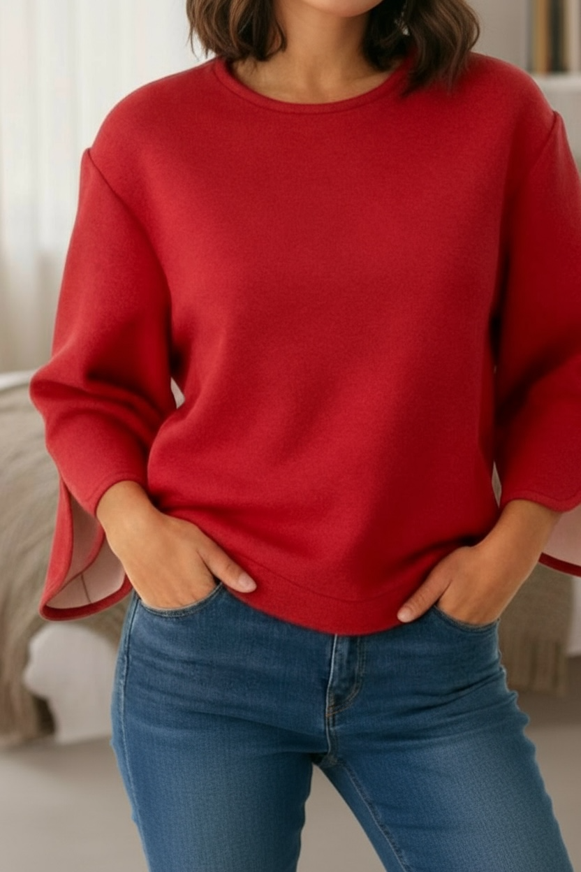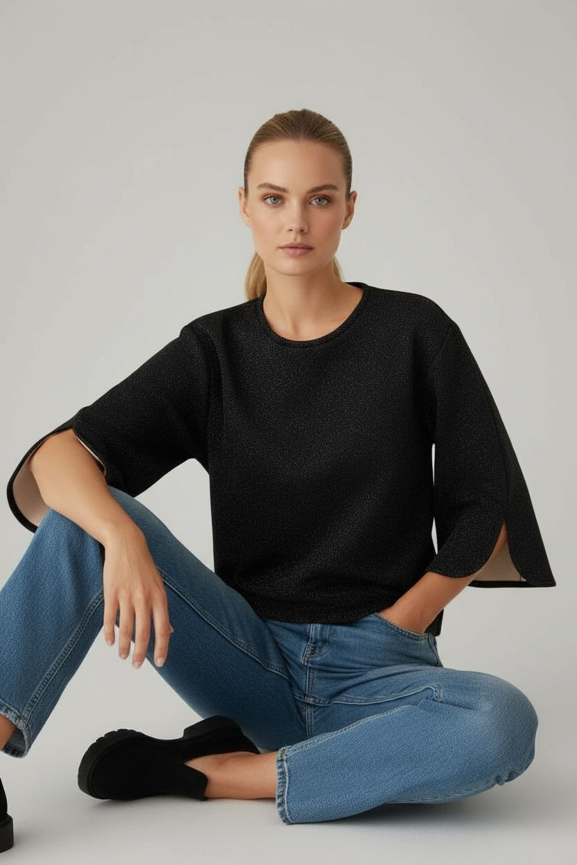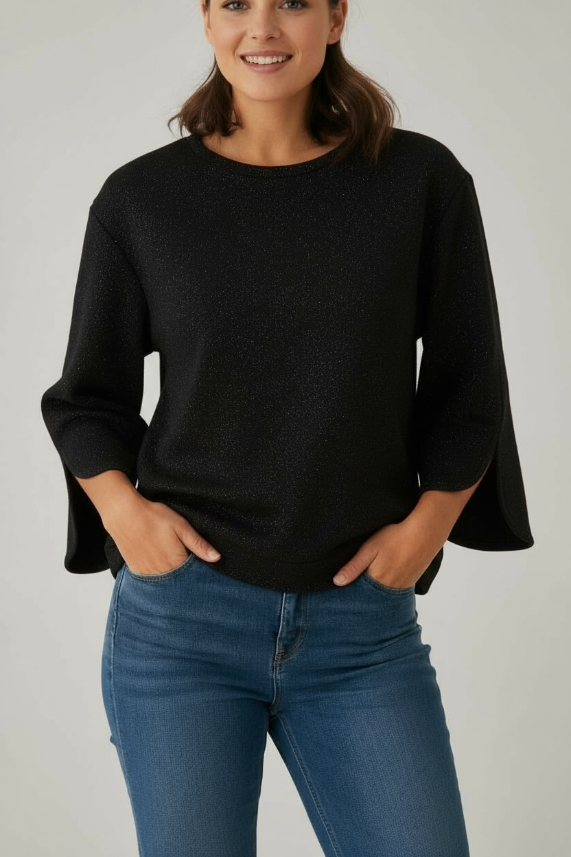 Un sweat molletonné pailleté aux manches larges et fendues, qui allie audace et élégance.