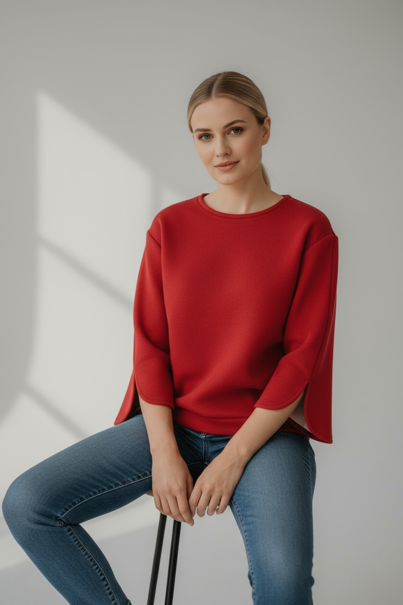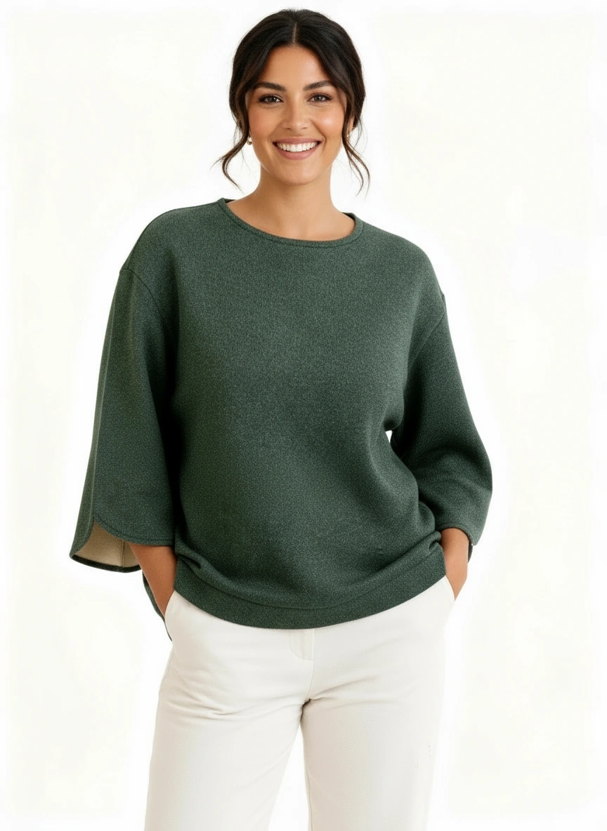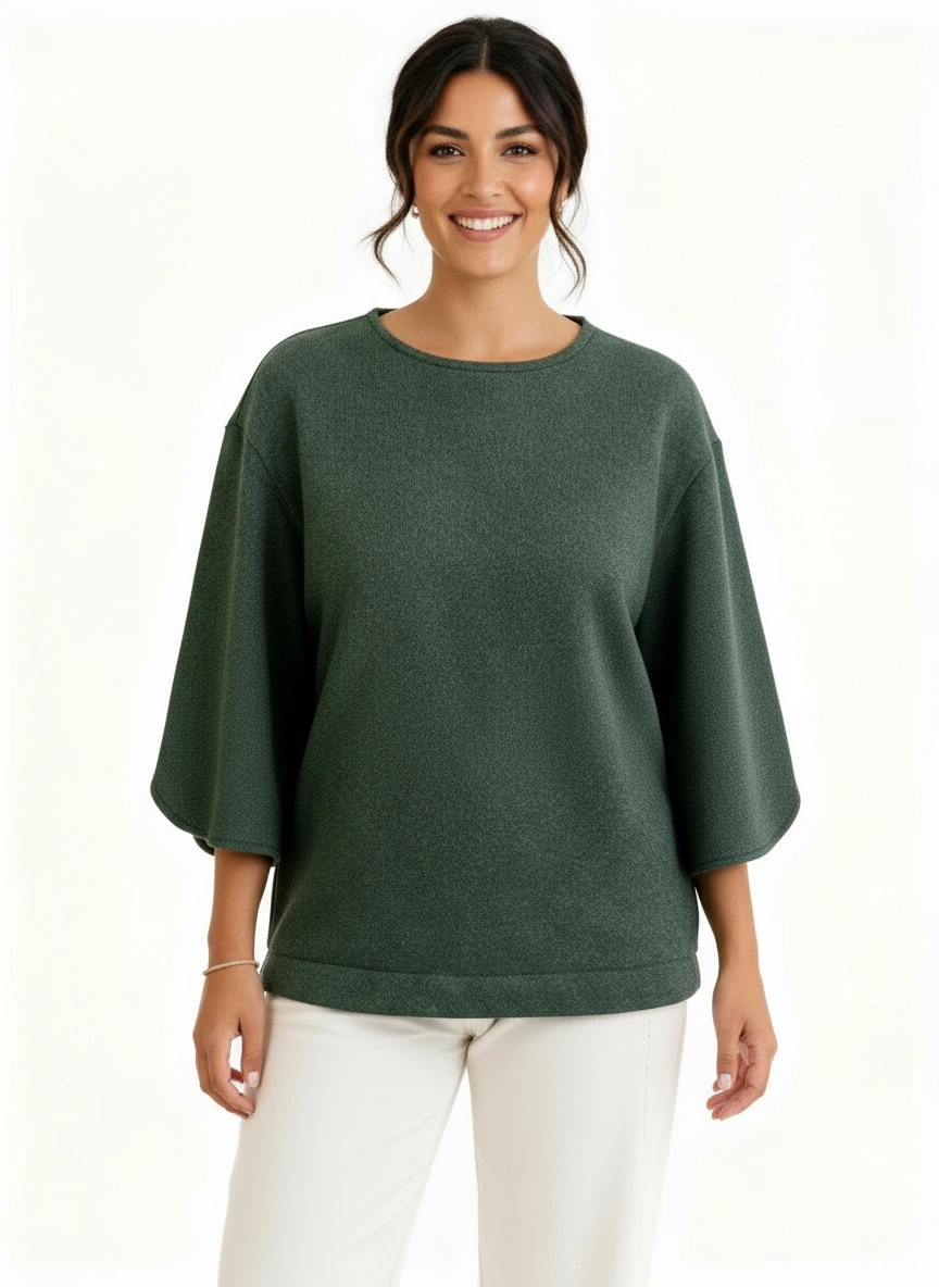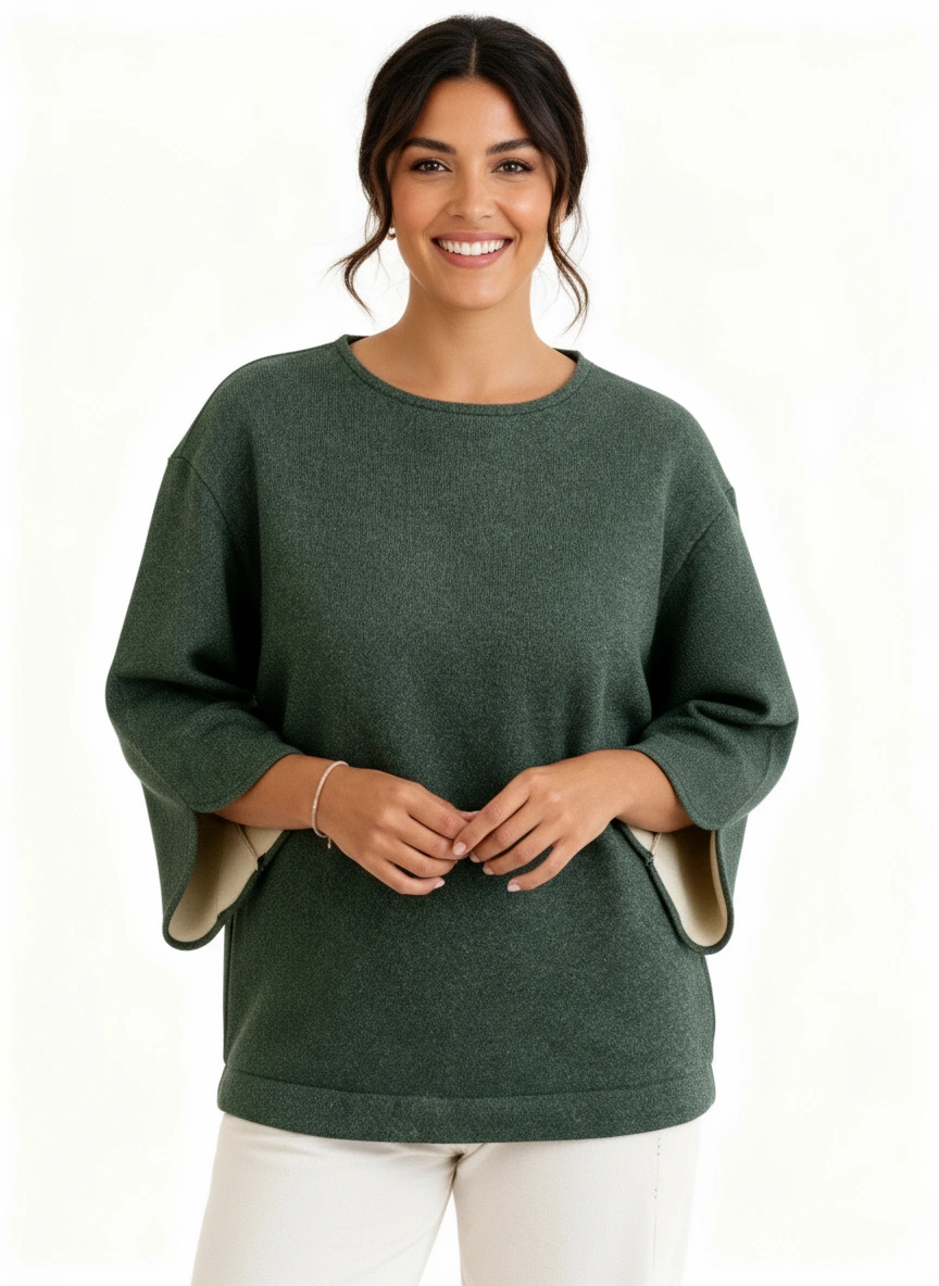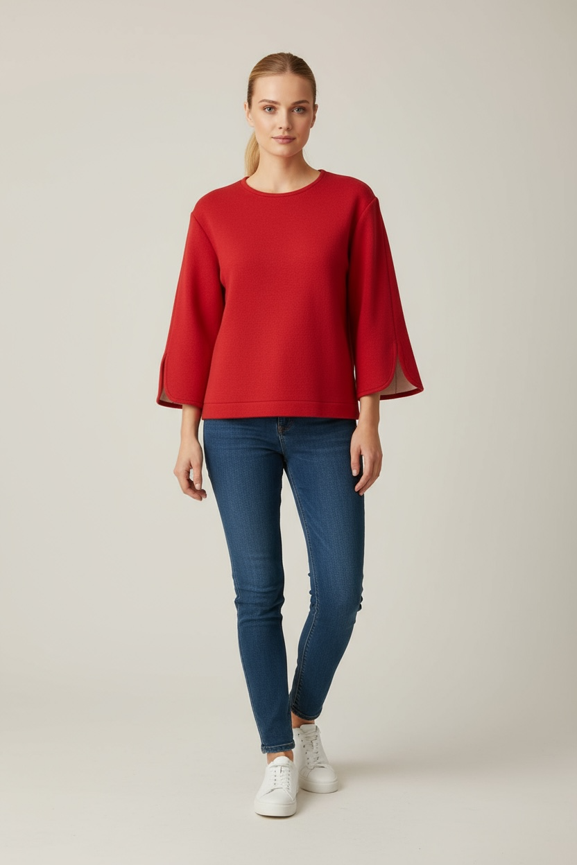 Un sweat molletonné pailleté aux manches larges et fendues, qui allie audace et élégance.