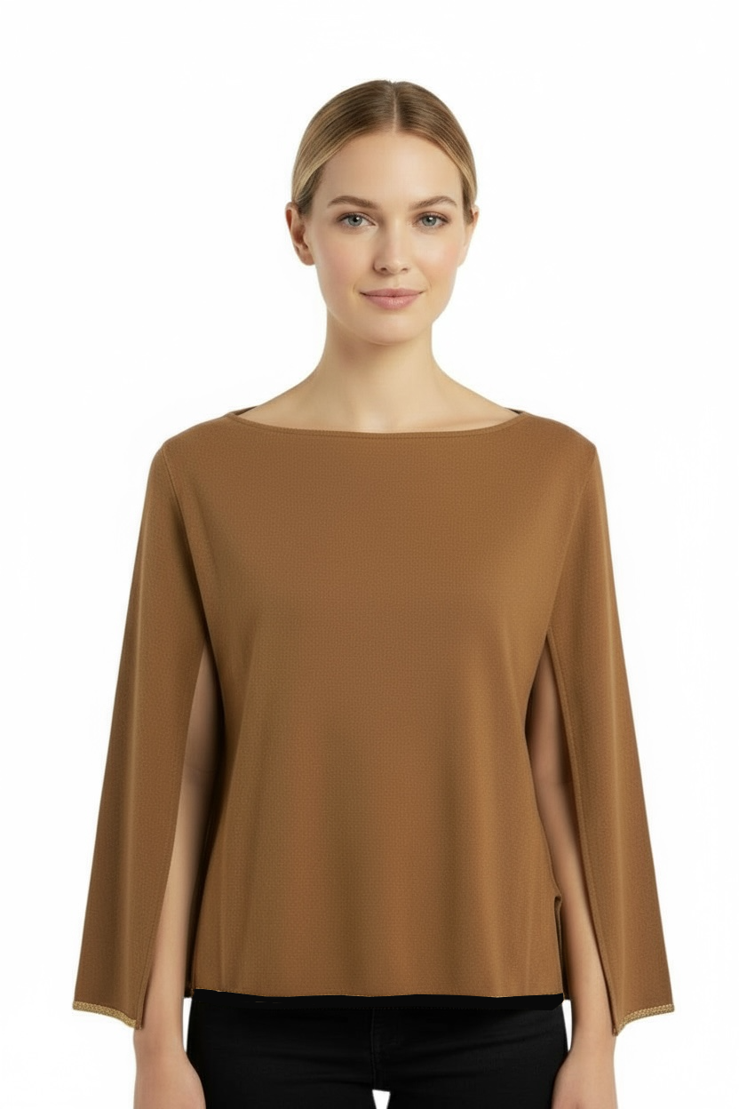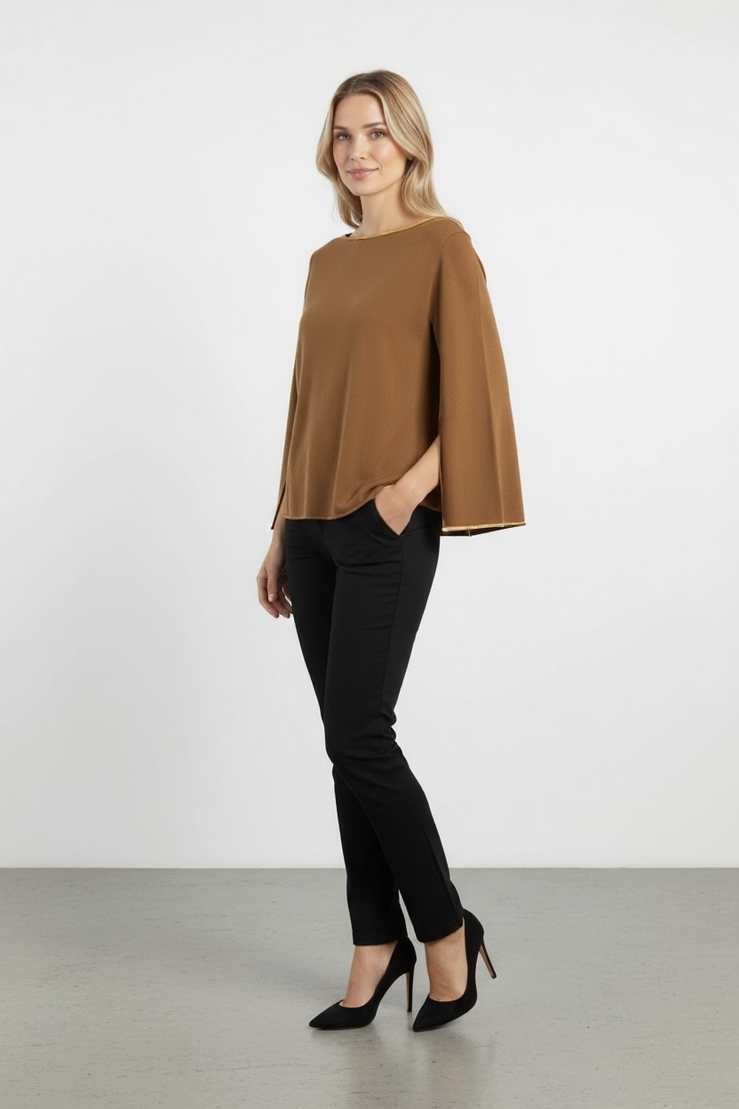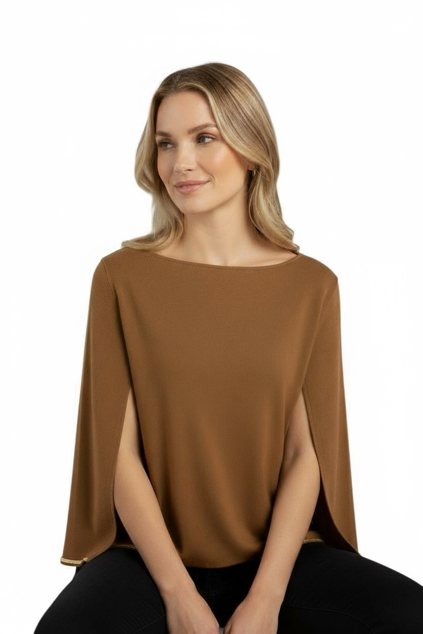 Débardeur/cape raffiné avec un passepoil scintillant au bas de la cape ajoute une finition précieuse.