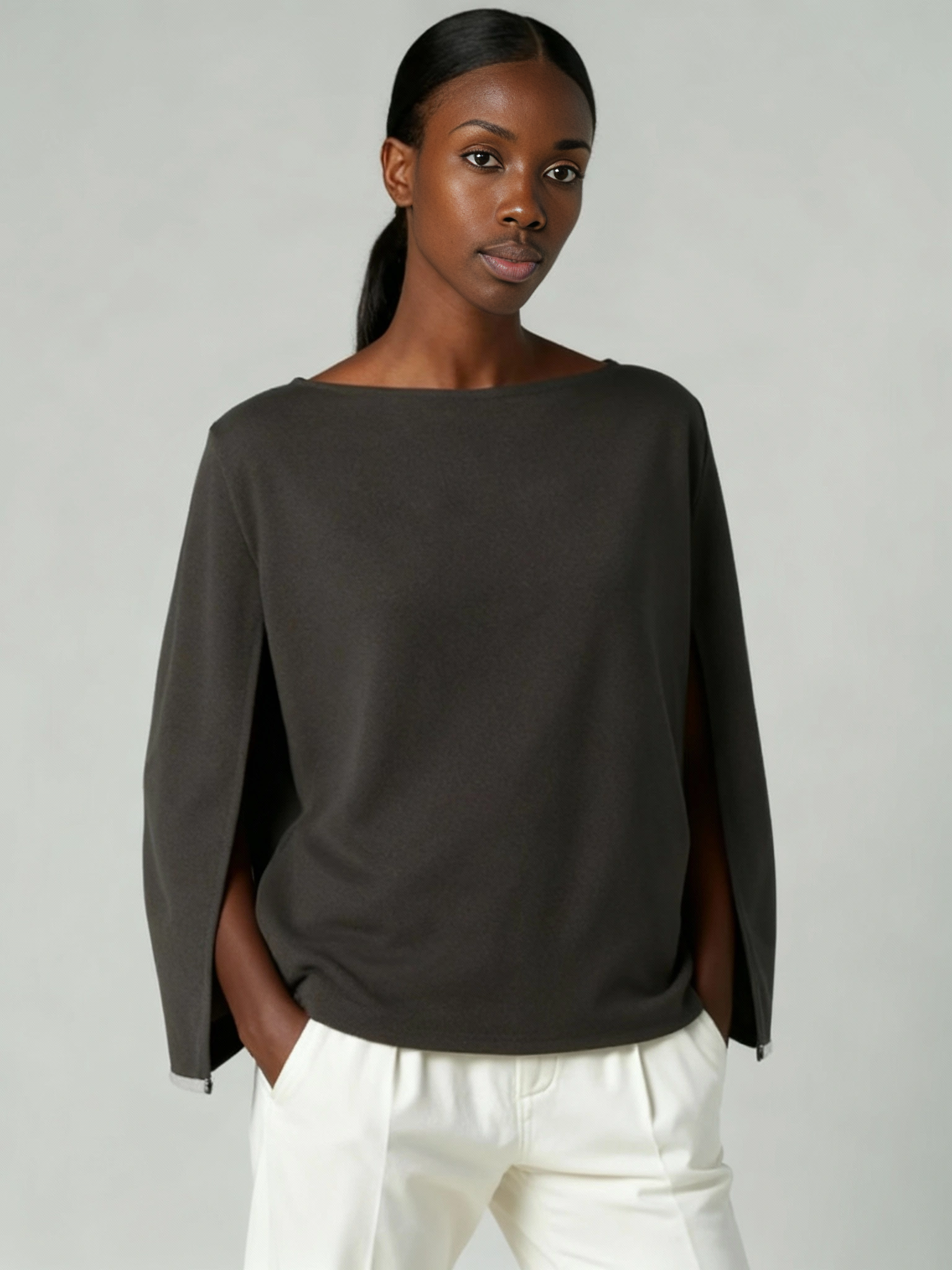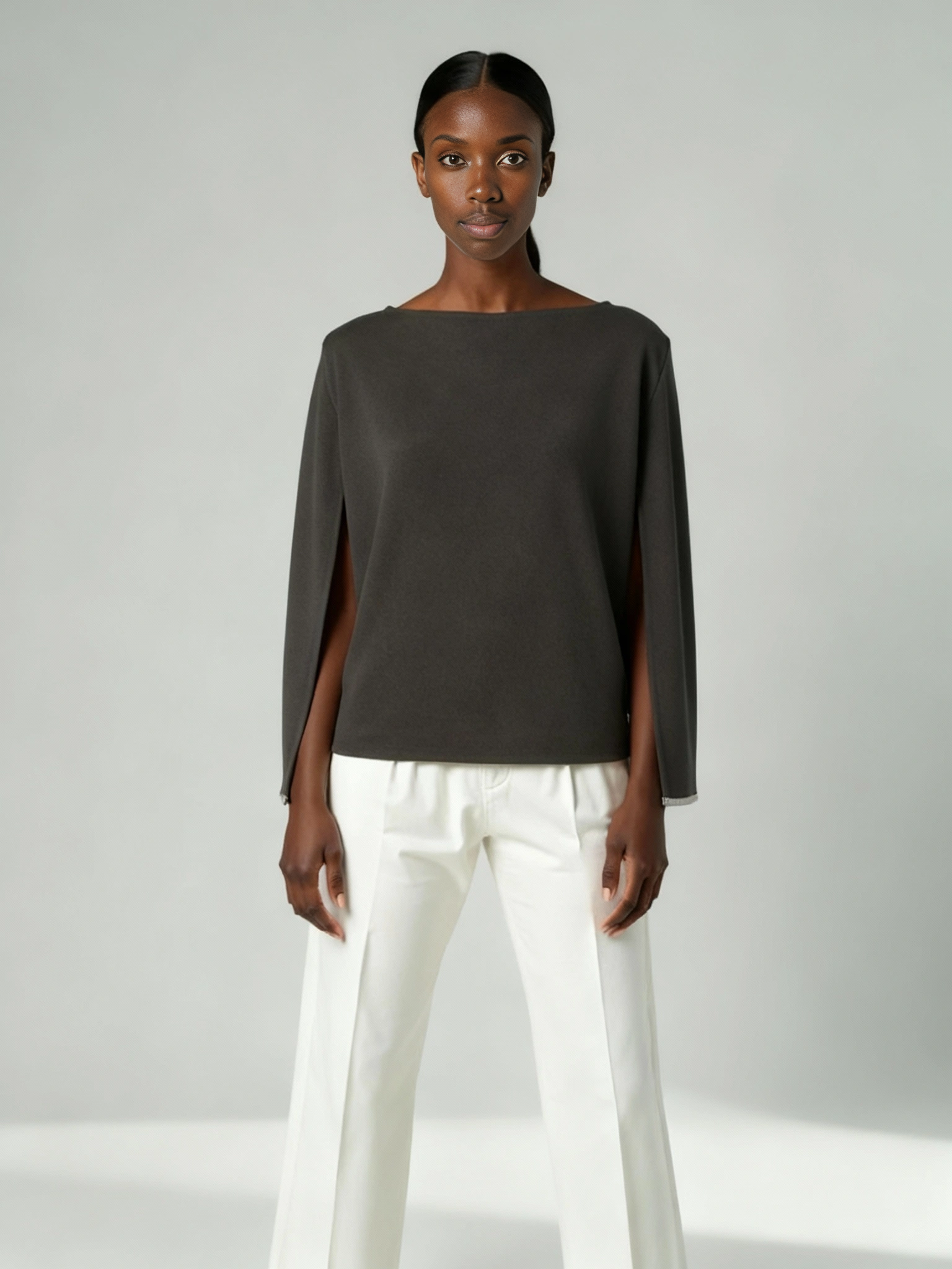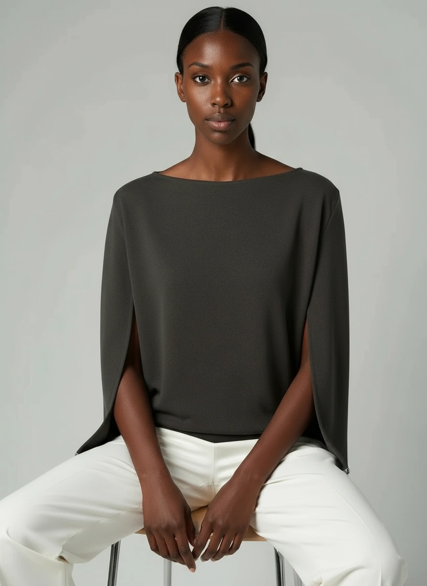 Débardeur/cape raffiné avec un passepoil scintillant au bas de la cape ajoute une finition précieuse.