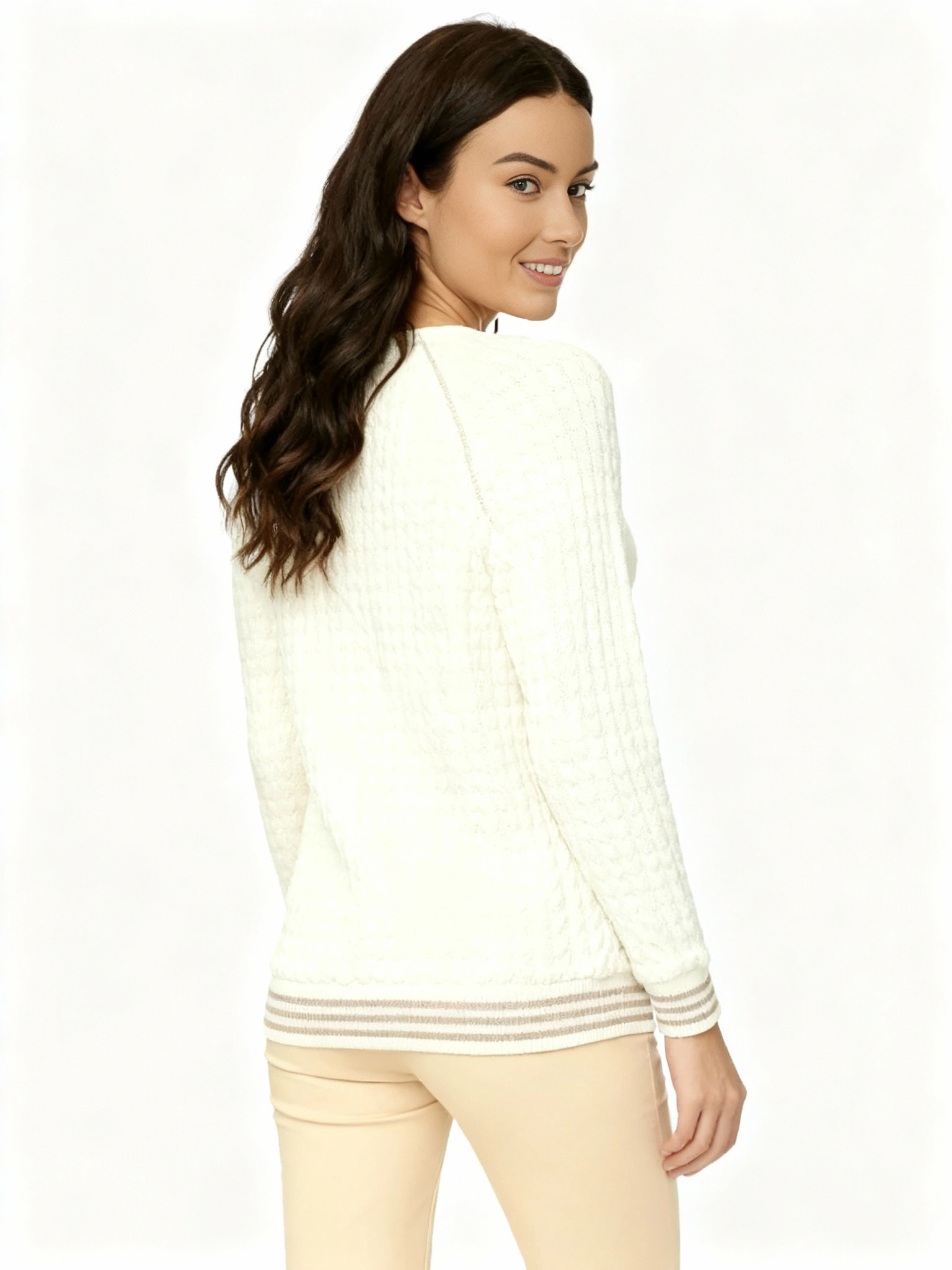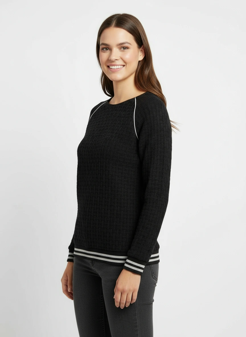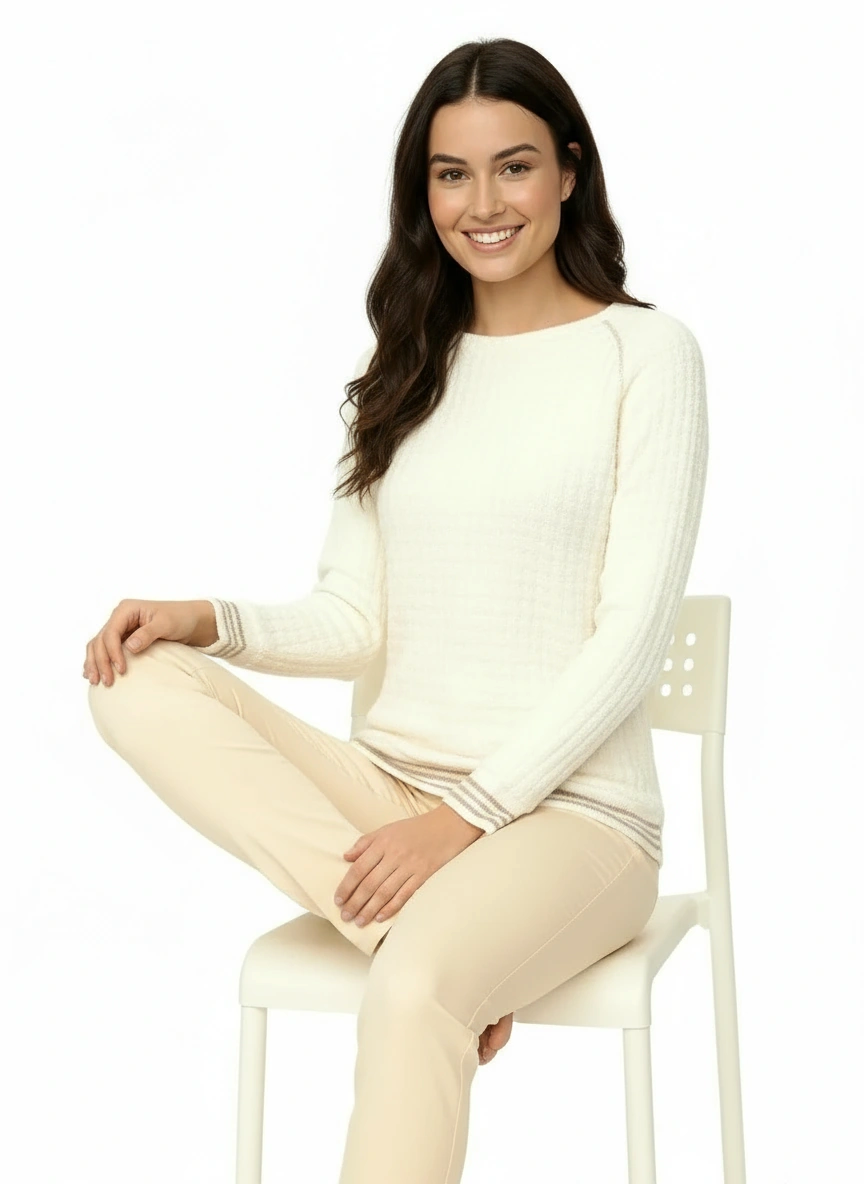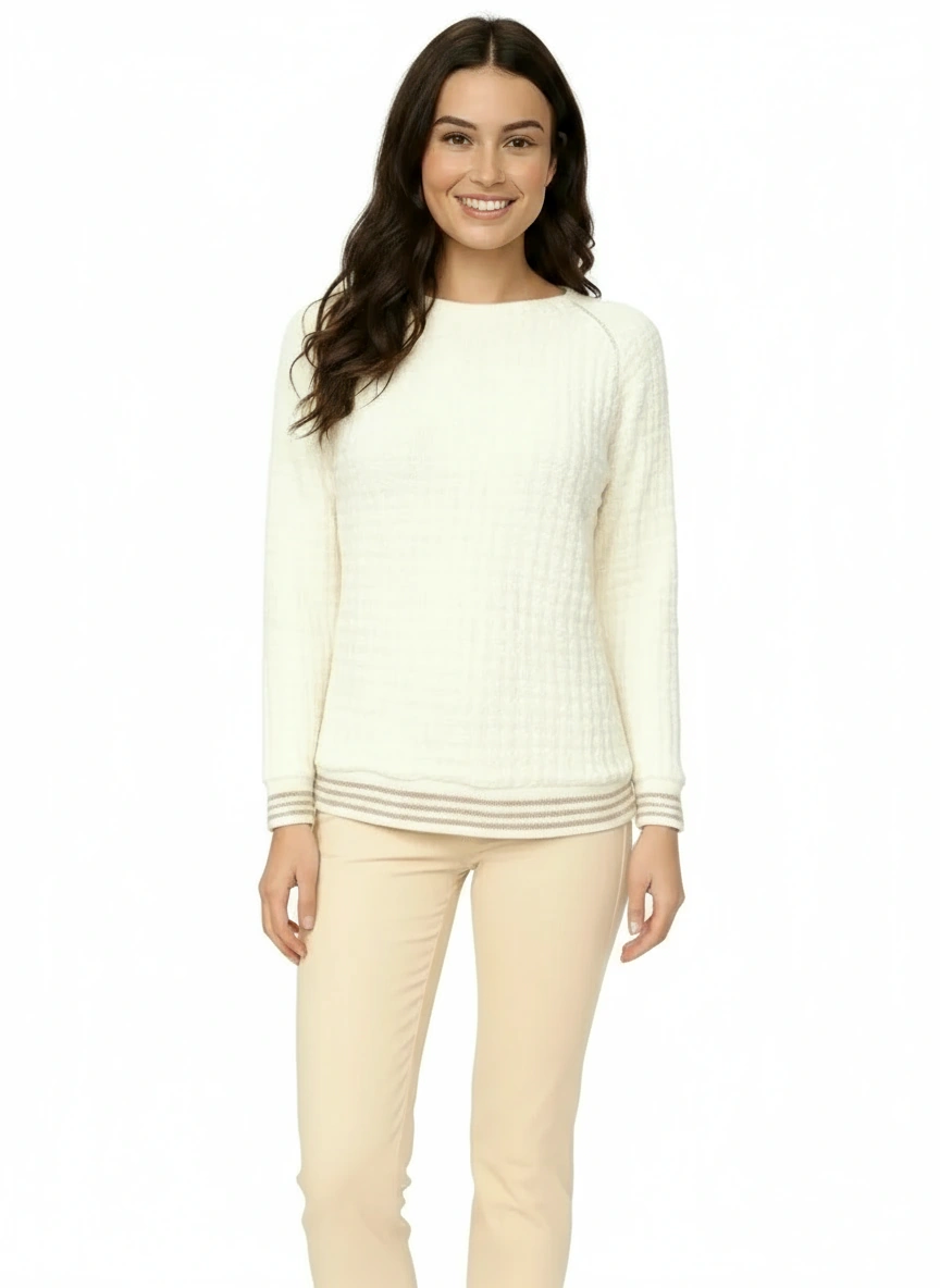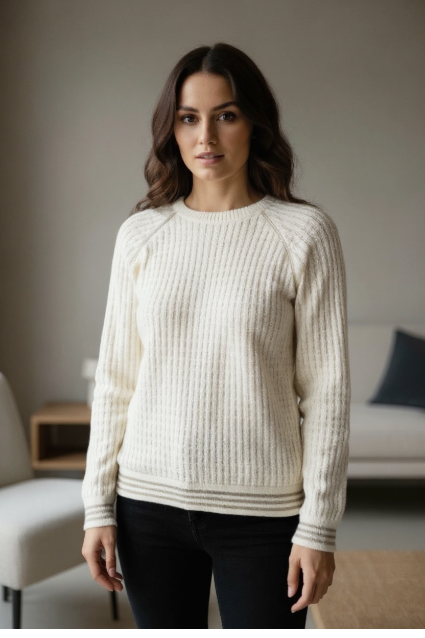 Un sweat-shirt en maille tricoté lumineux animé de subtils détails pailletés,